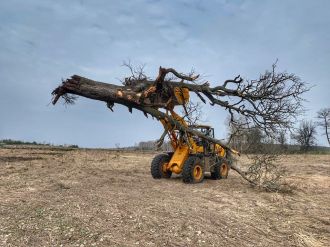 Фермеру из Брянской области под зерно необходим был ковш большего объема. Мы предложили ему увеличенный ковш , объемом 2,5 м3. Для корчевания клиент оставил стандартный скальный ковш с зубьями 1,8 м3.